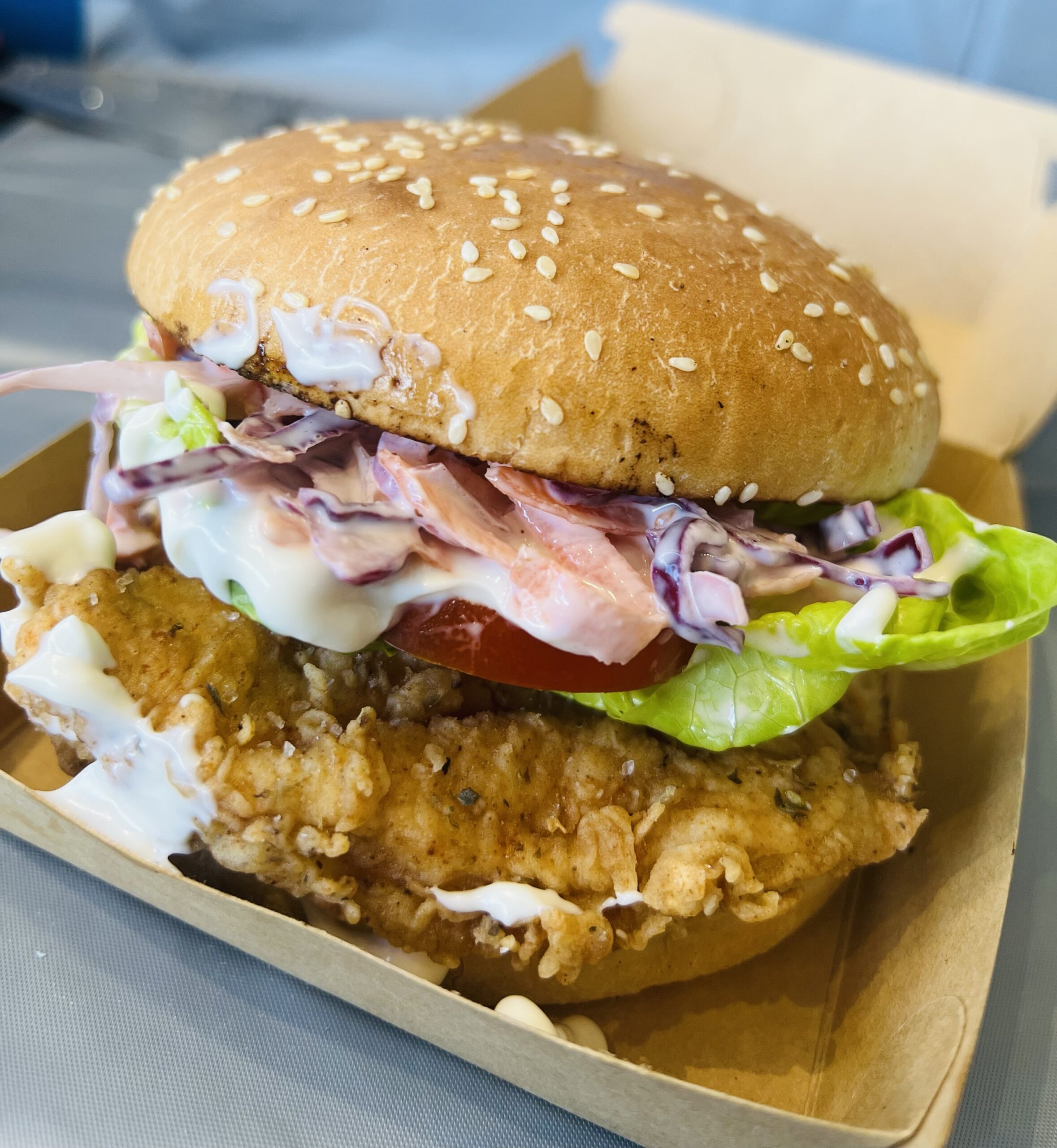 Mayo, slaw, lettuce, tomato